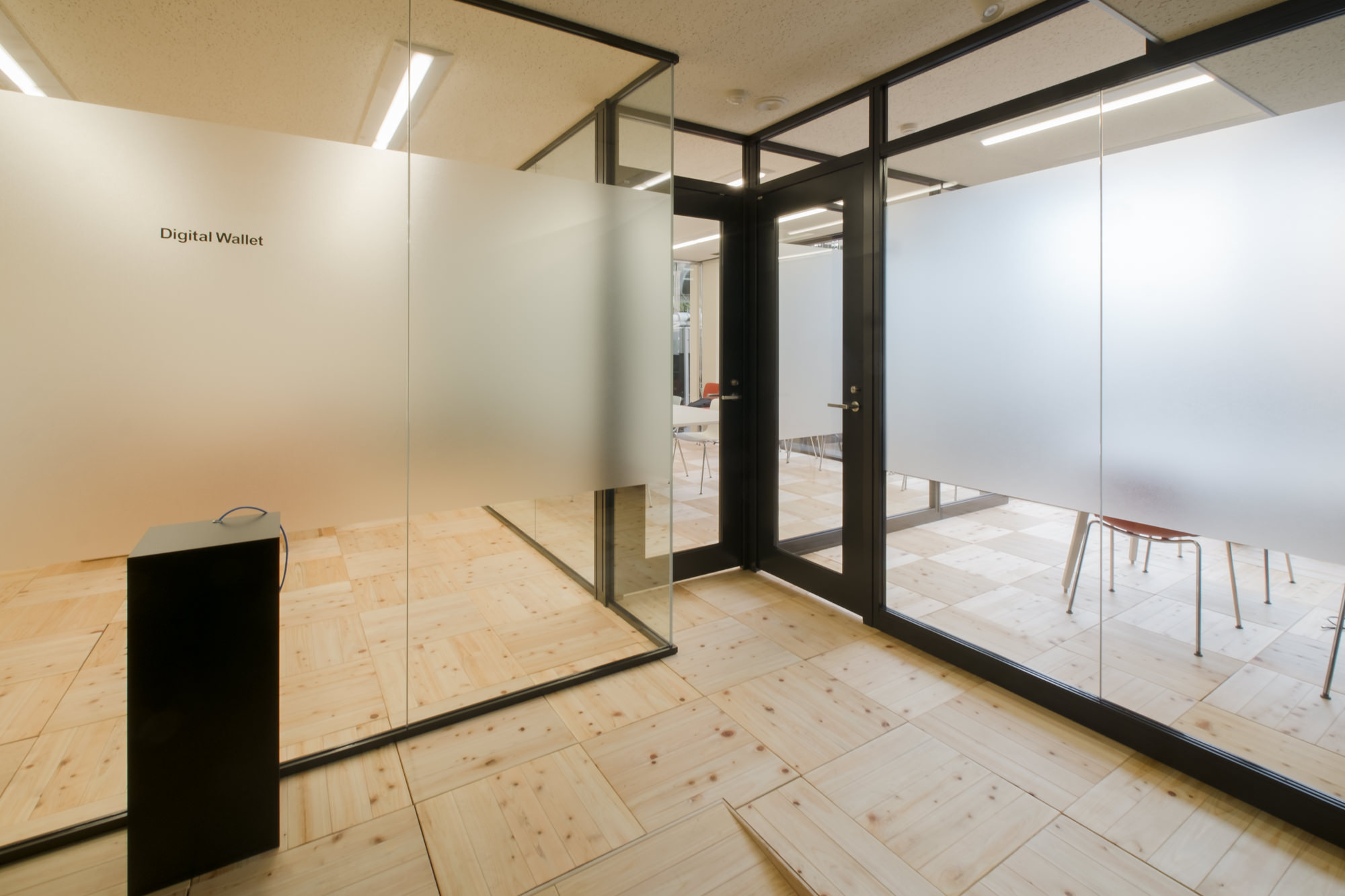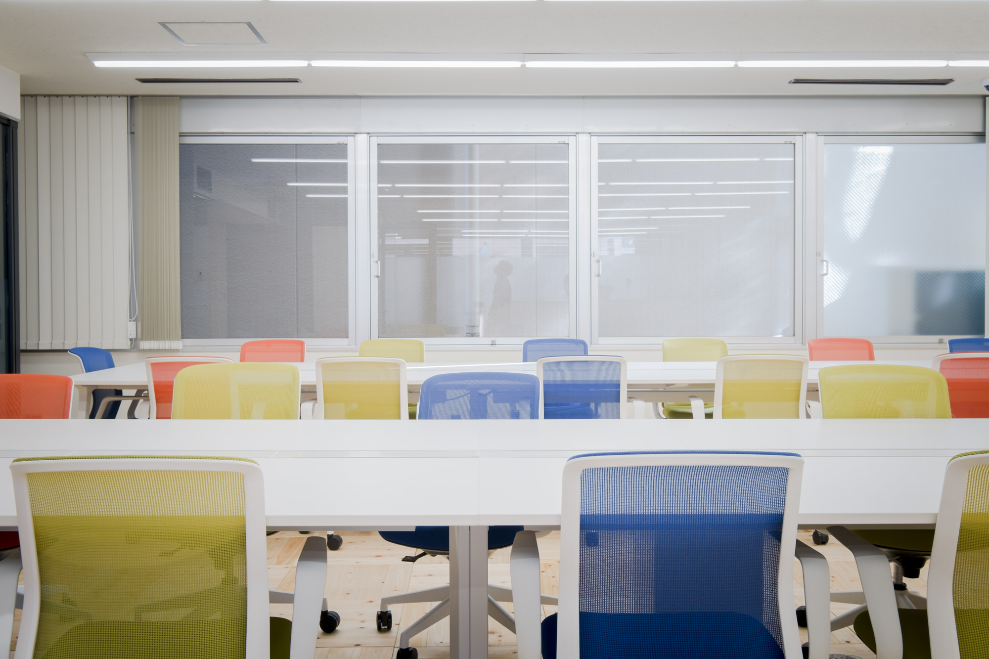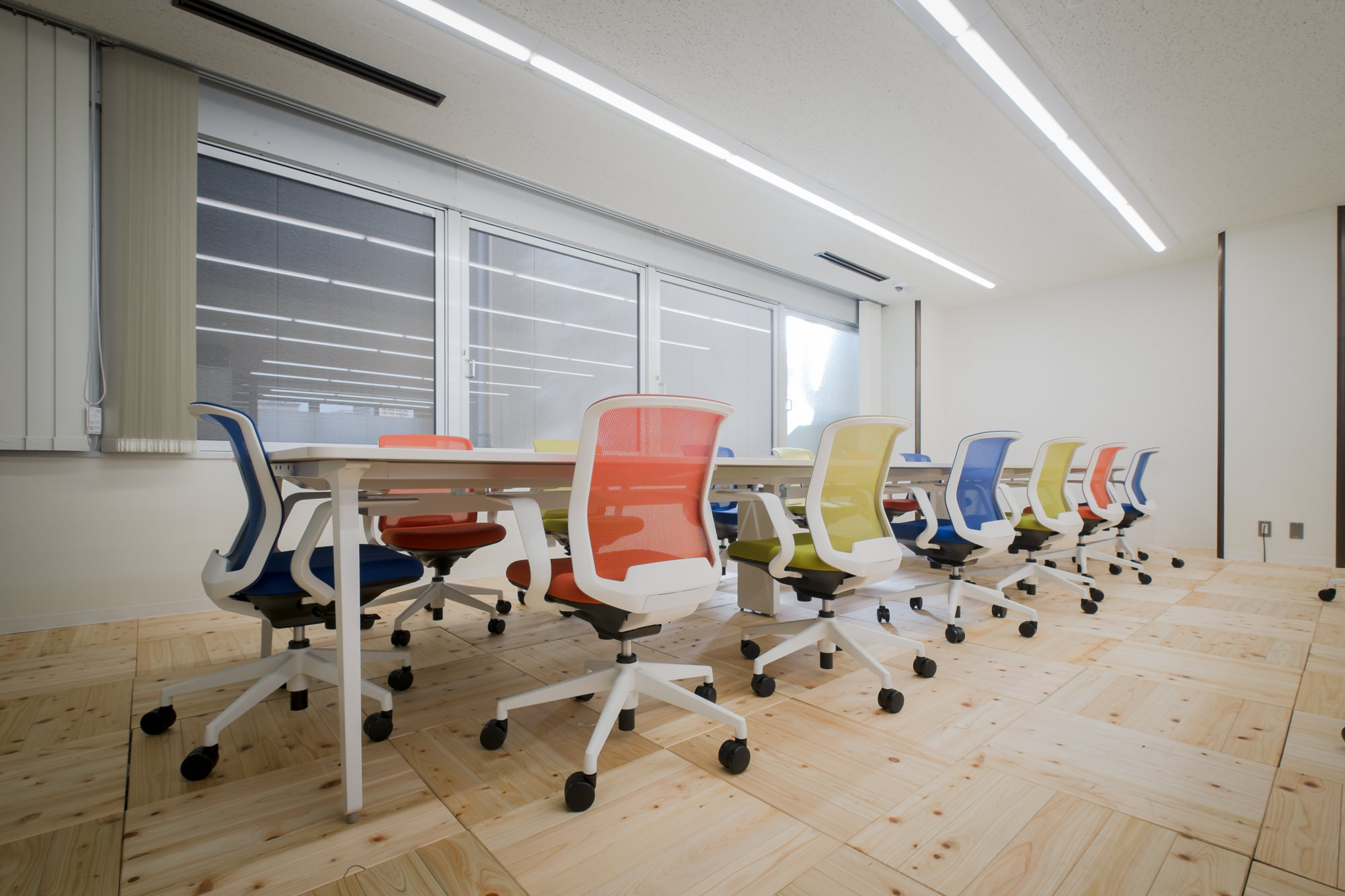 内装は現在のオフィスの雰囲気のままで、床は本物の木材を使用したいとの要望があったので、無垢材でできている「ユカハリタイル」を使用。エントランスは、ガラスに目隠しシートを貼って室内の雰囲気がわかるようにしつつ、プライバシーが守れるようにしました。 執務スペースはフリーアドレスにして、好きな場所で作業をするスタイルとなっています。