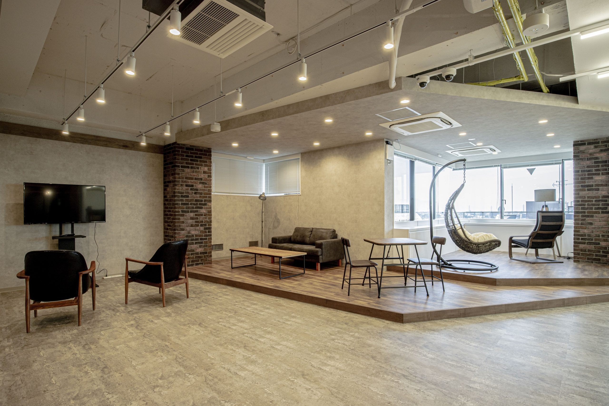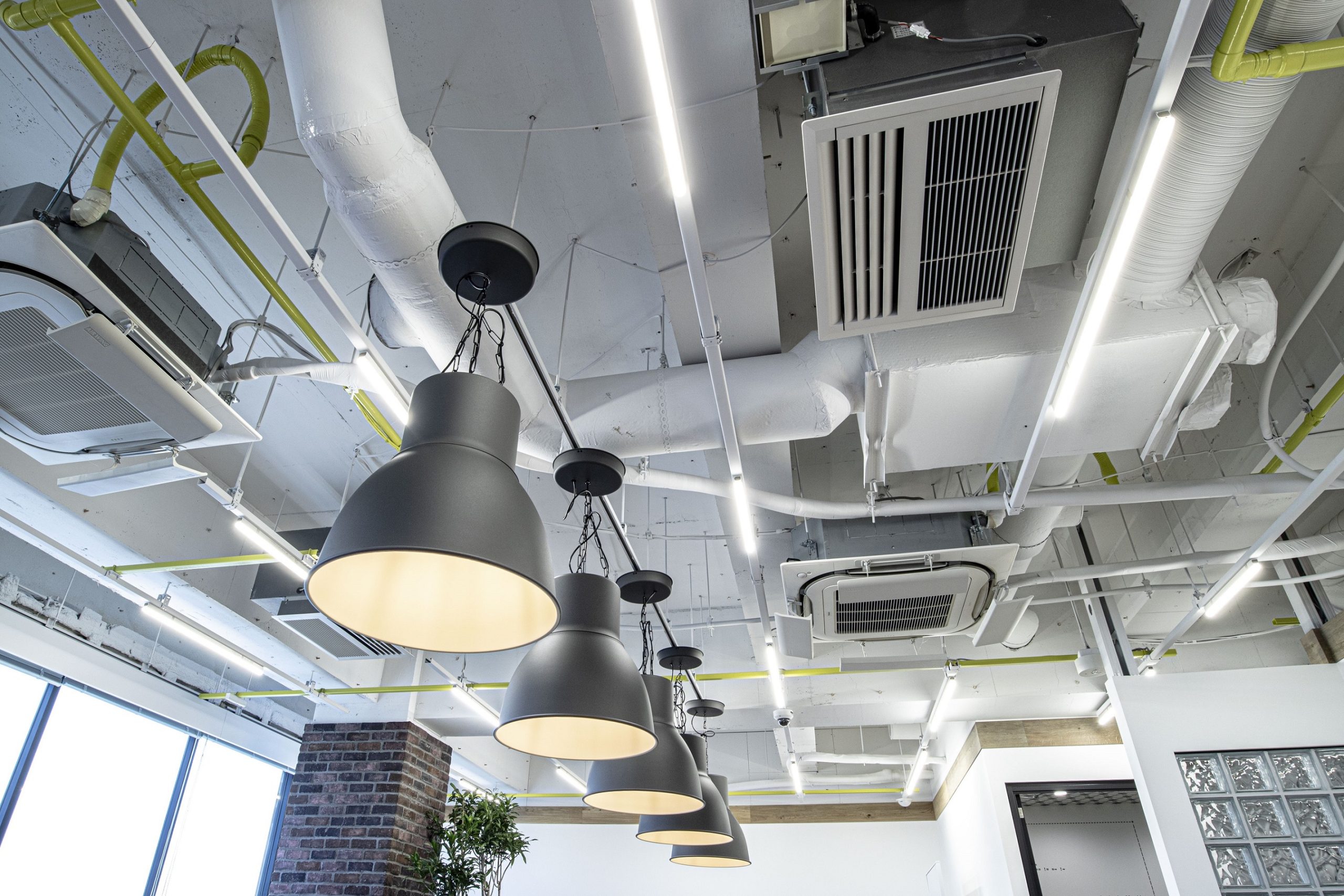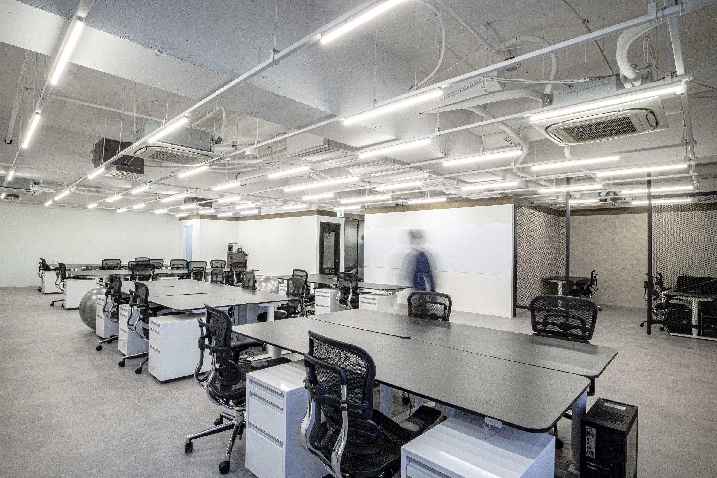 フリースペースはリラックスできるチェアや、様々なインテリアを配置しているので、作業効率の向上も期待できます。 また、オフィス内ほとんどがスケルトン天井なので、開放感が生まれ、空間に広がりが感じられるようになります。