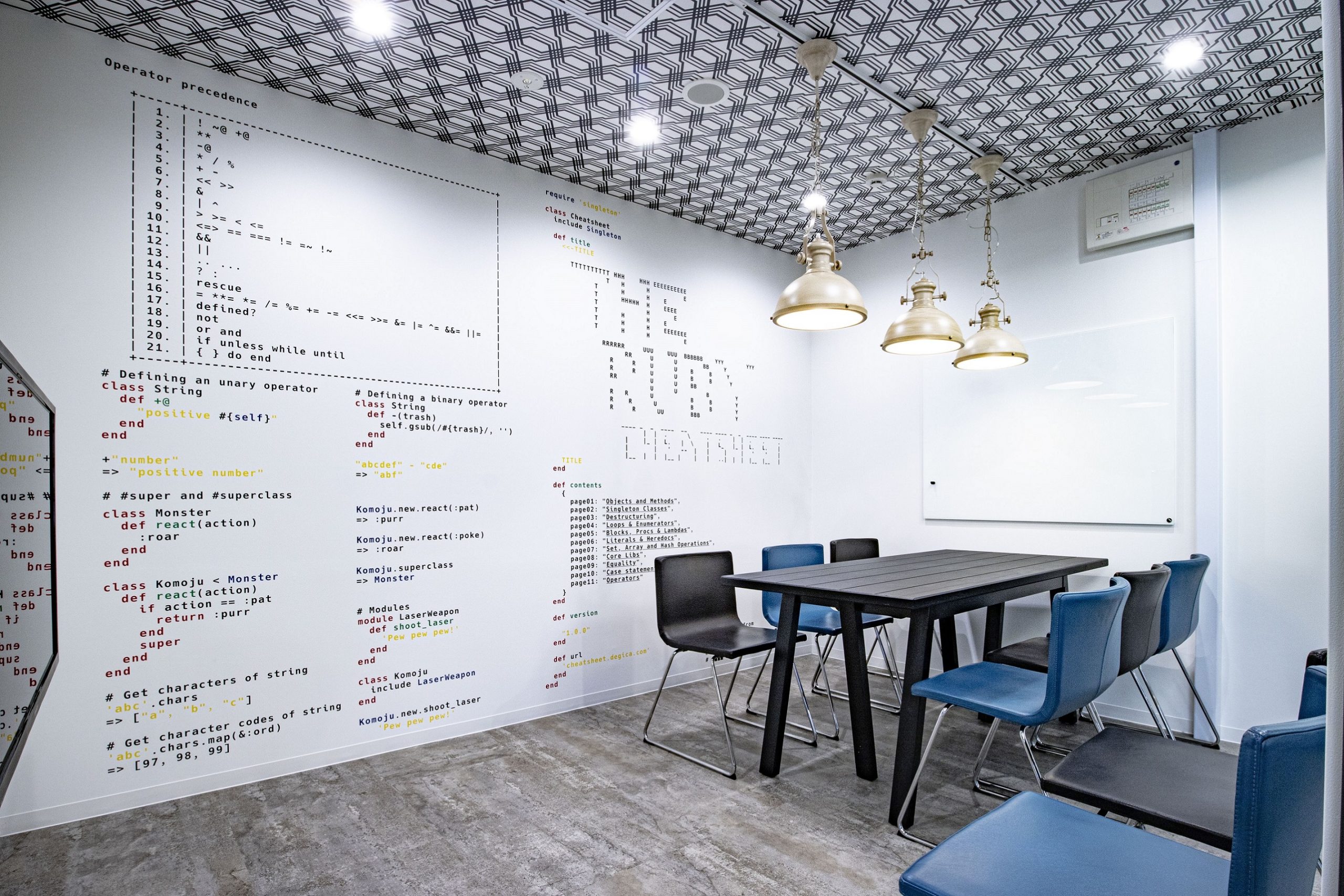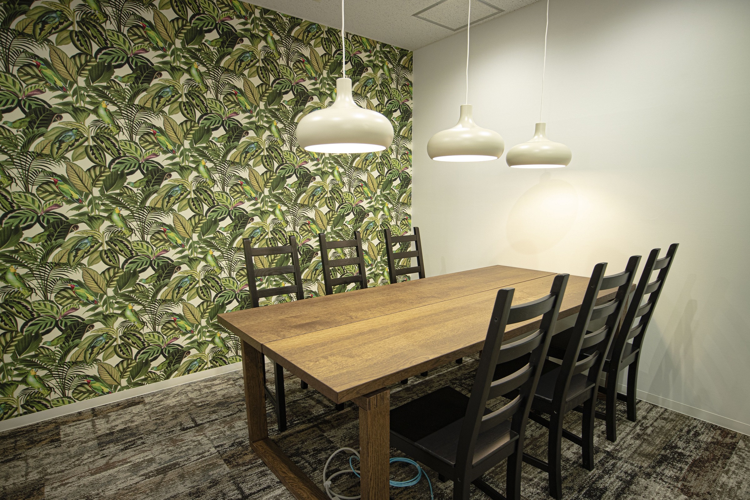 インダストリアルな空間をベースにモダンでシンプルな作業スペース、ジャングルや壁紙一面にコードが入っているそれぞれ特徴的なミーティングルームなど、スペースごとにこだわった空間に仕上げました。