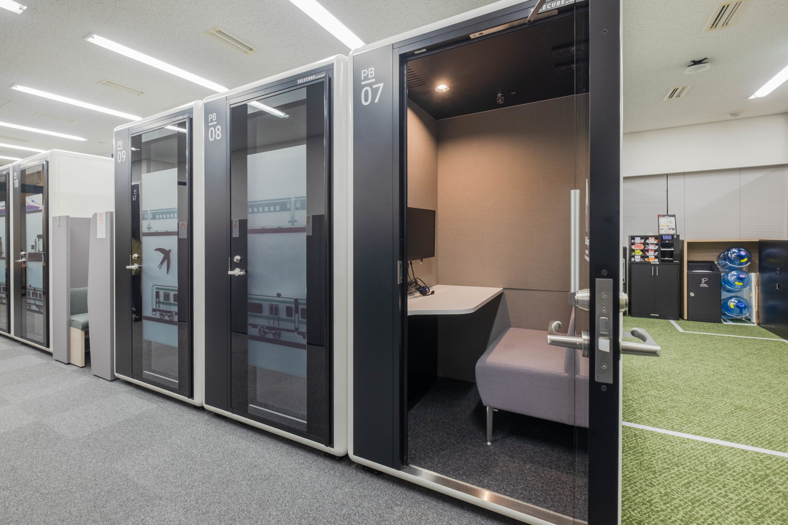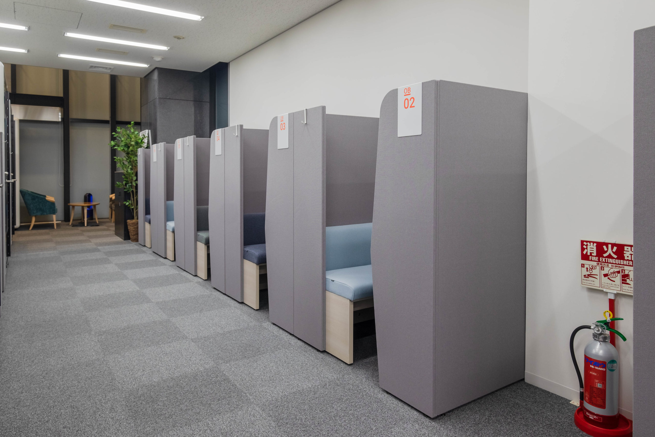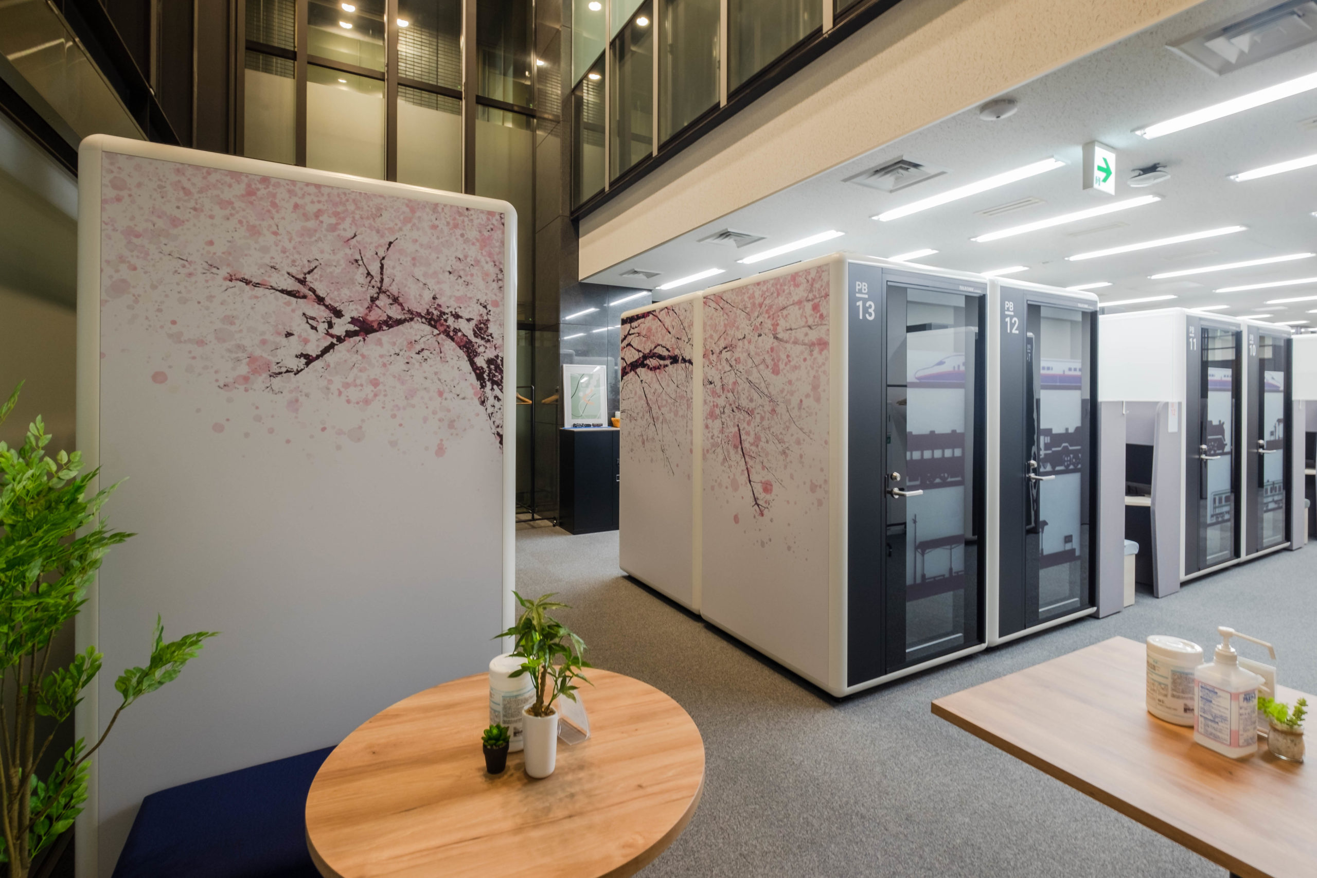コロナによりリモートワークの社員が増えた為、ターミナル駅に個室ブースを備えたサテライトオフィスを構築するとのことで、ご依頼をいただきました。