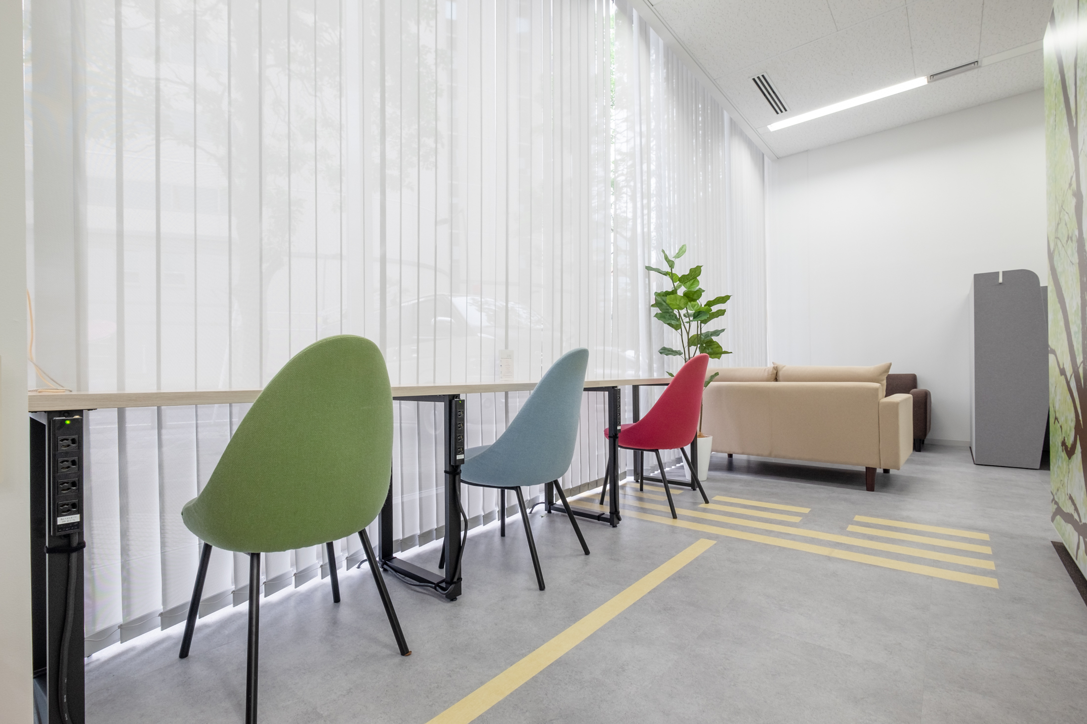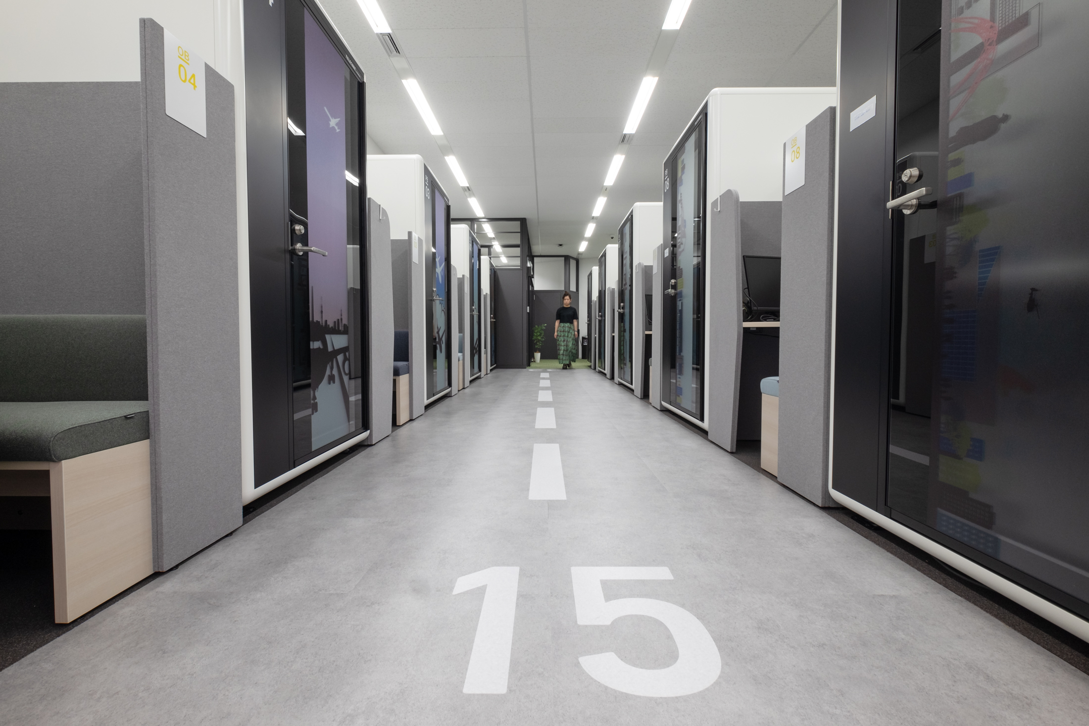 コロナによりリモートワークの社員が増えた為、ターミナル駅に個室ブースを備えたサテライトオフィスを構築するとのことで、ご依頼をいただきました。