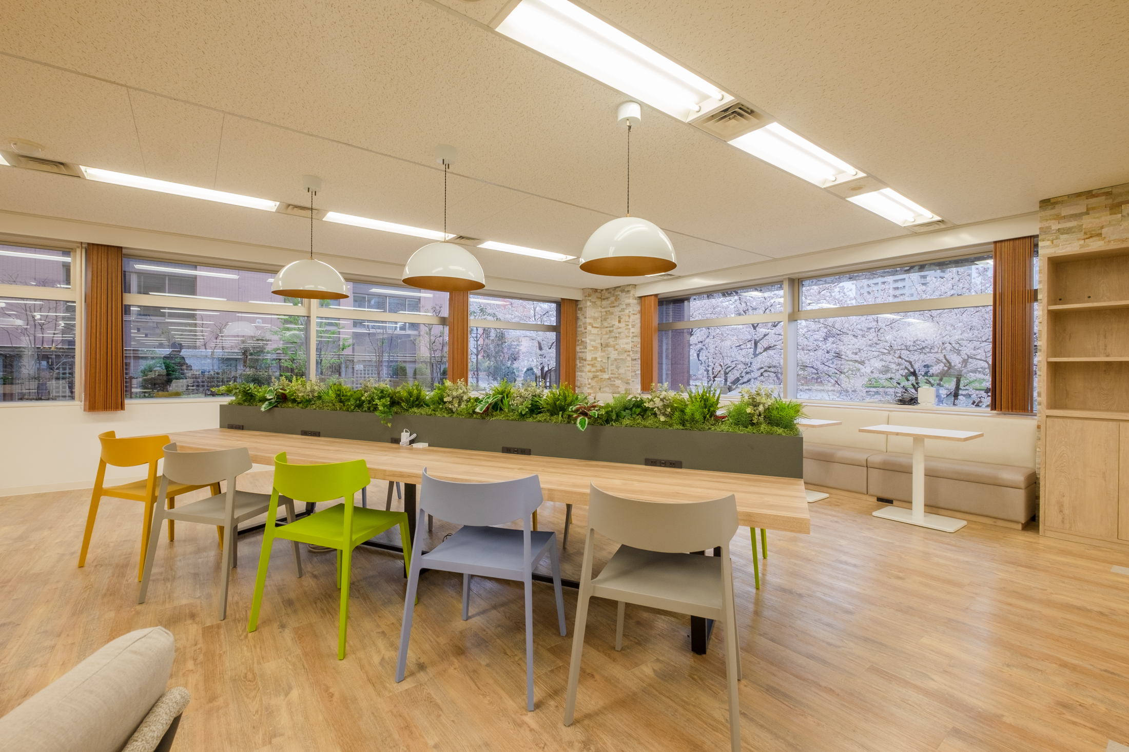 月島に拠点を一部集約したプロジェクト。 外資系IT企業のような洗練されかつナチュラルな空間にしたいとのことで、ご依頼をいただきました。