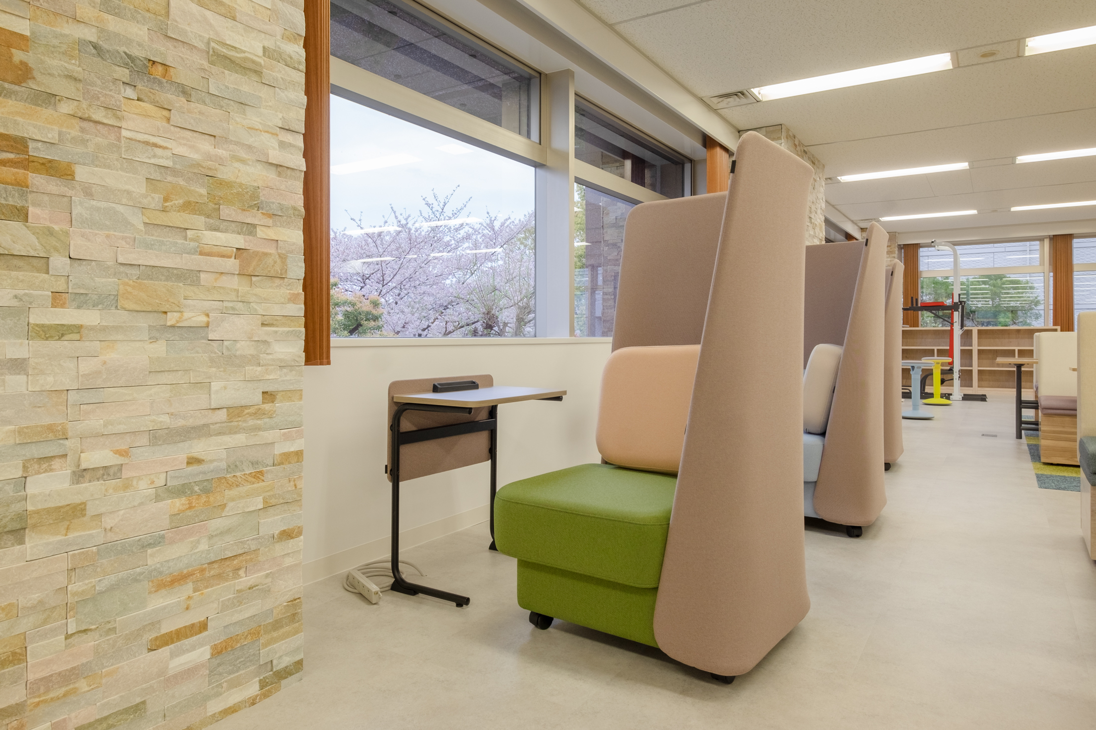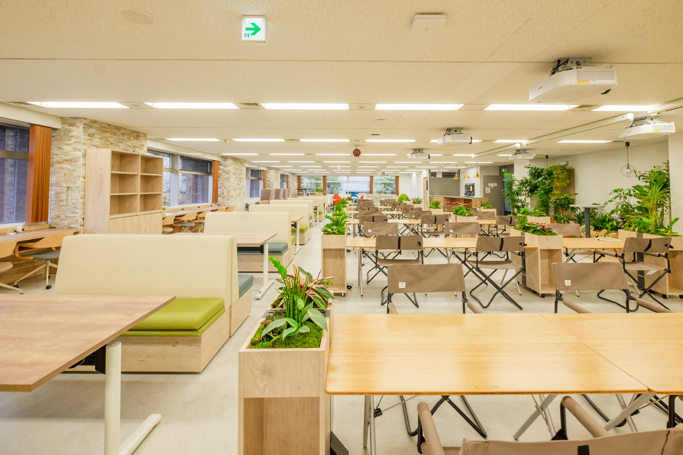 グリーンや自然な雰囲気が建物内で演出できるよう工夫しています。その空間だけに必要なオリジナル家具を配置することで唯一無二のデザインとなっています。
