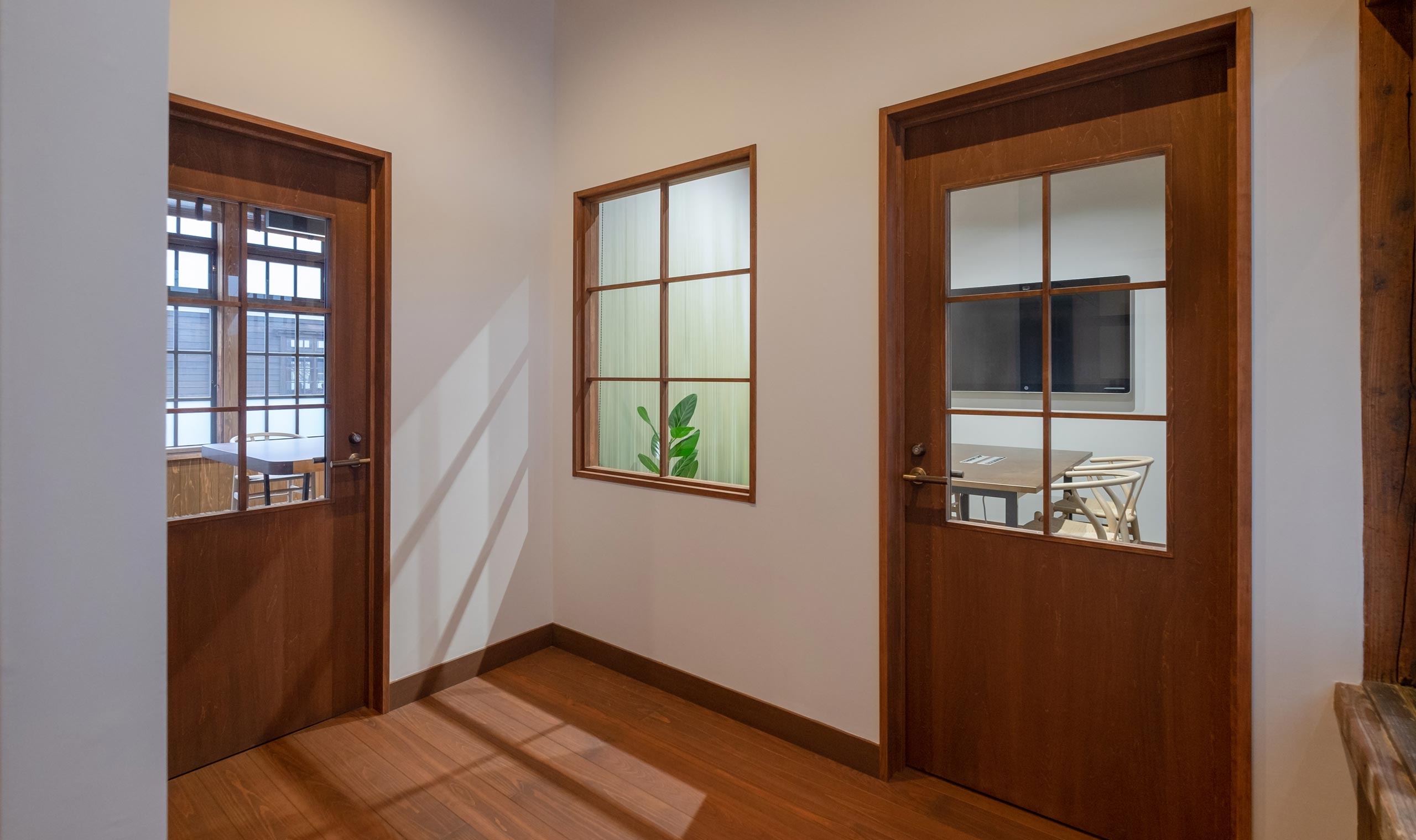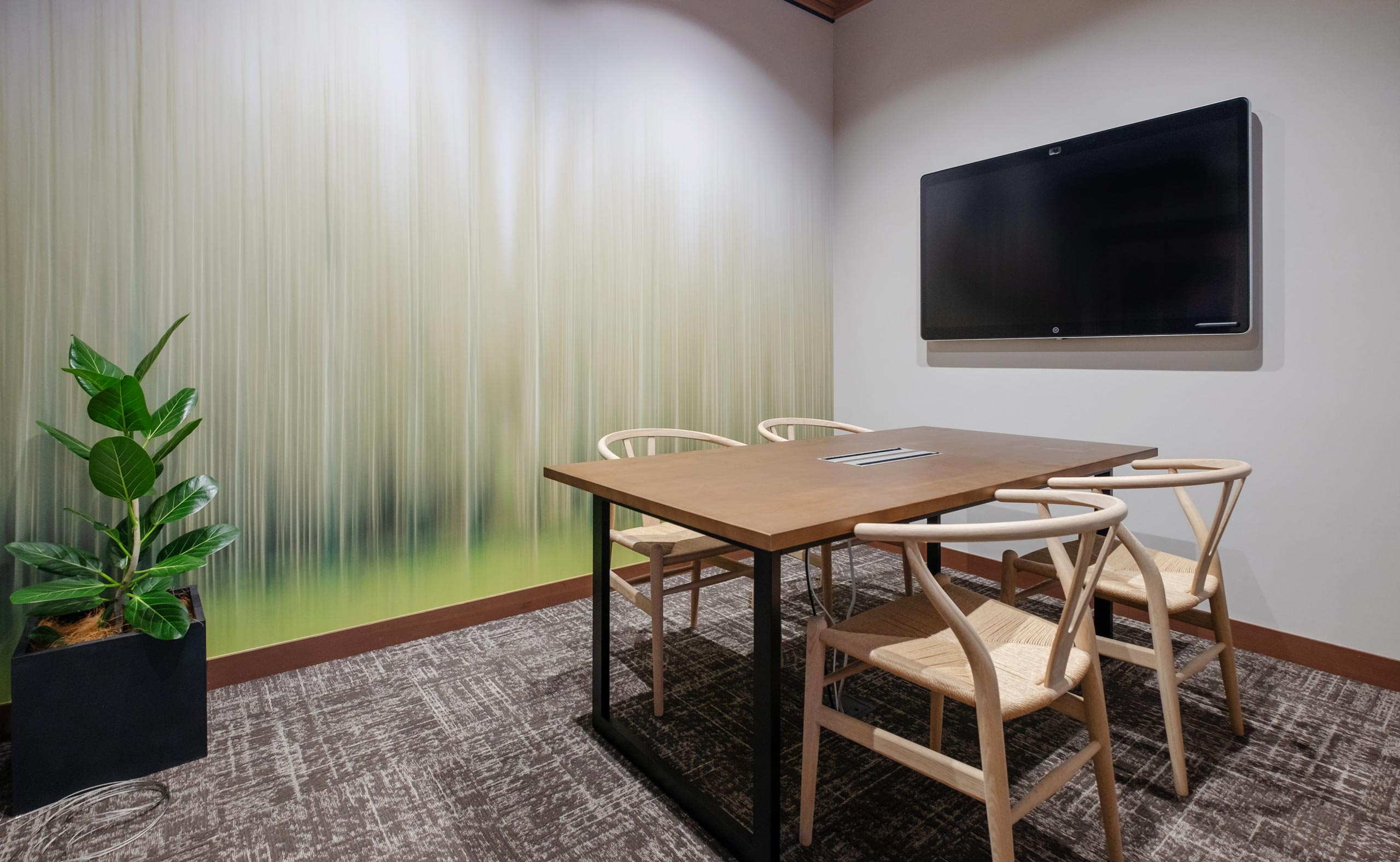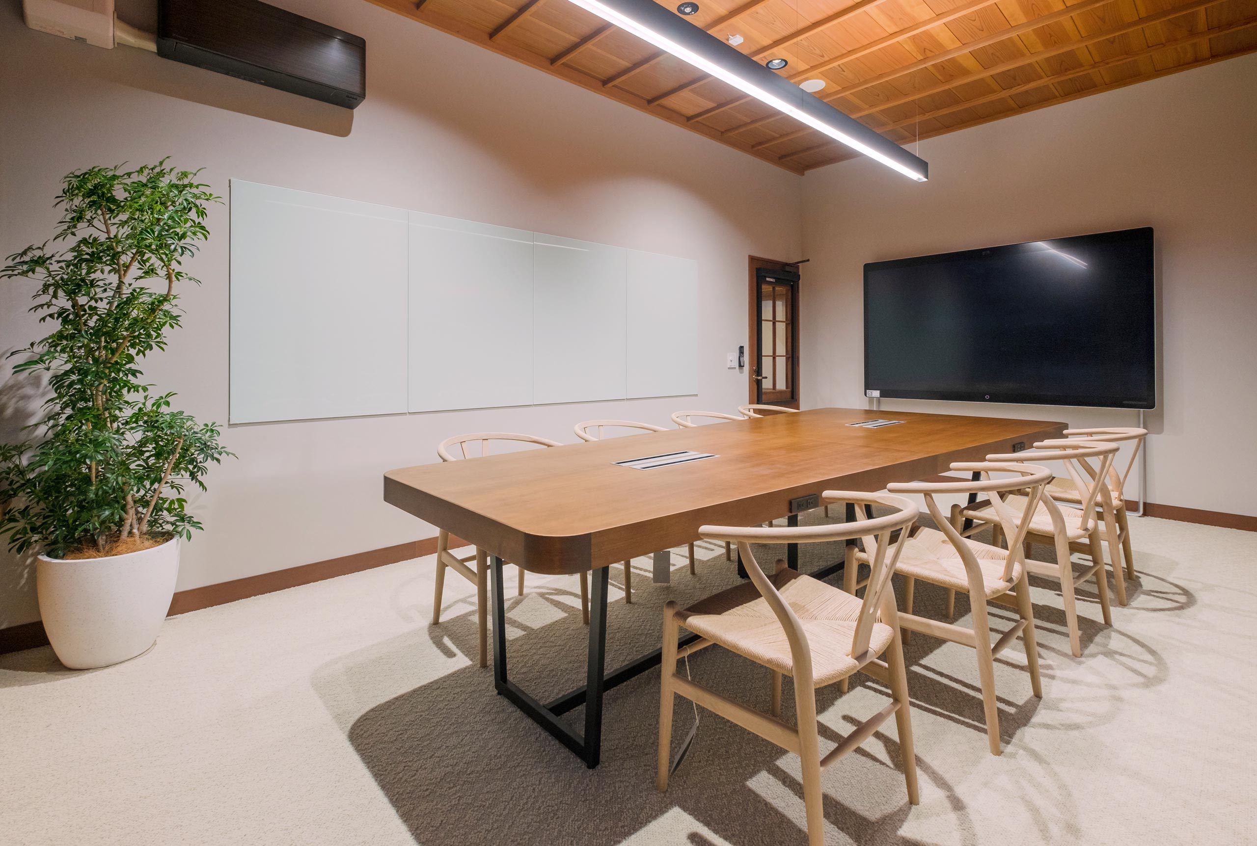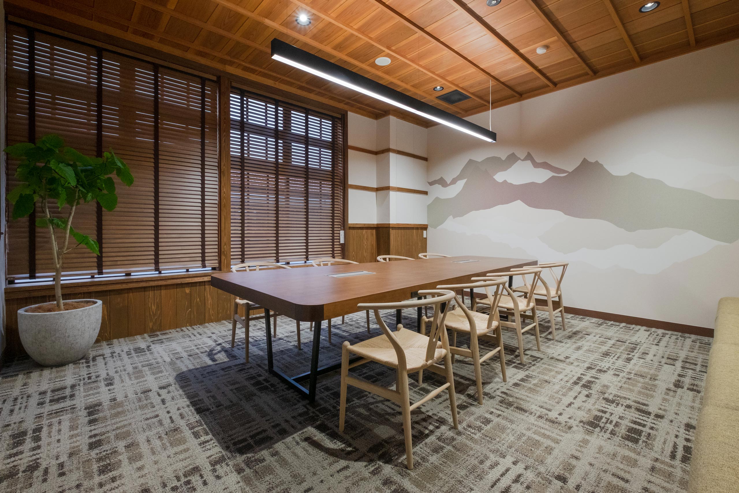 オフィス内のインテリアもウッド調をベースに、植栽を配置したりと落ち着いた雰囲気に施しています。 会議室では個室ブースも設け、オンラインの商談等活用していただけます。