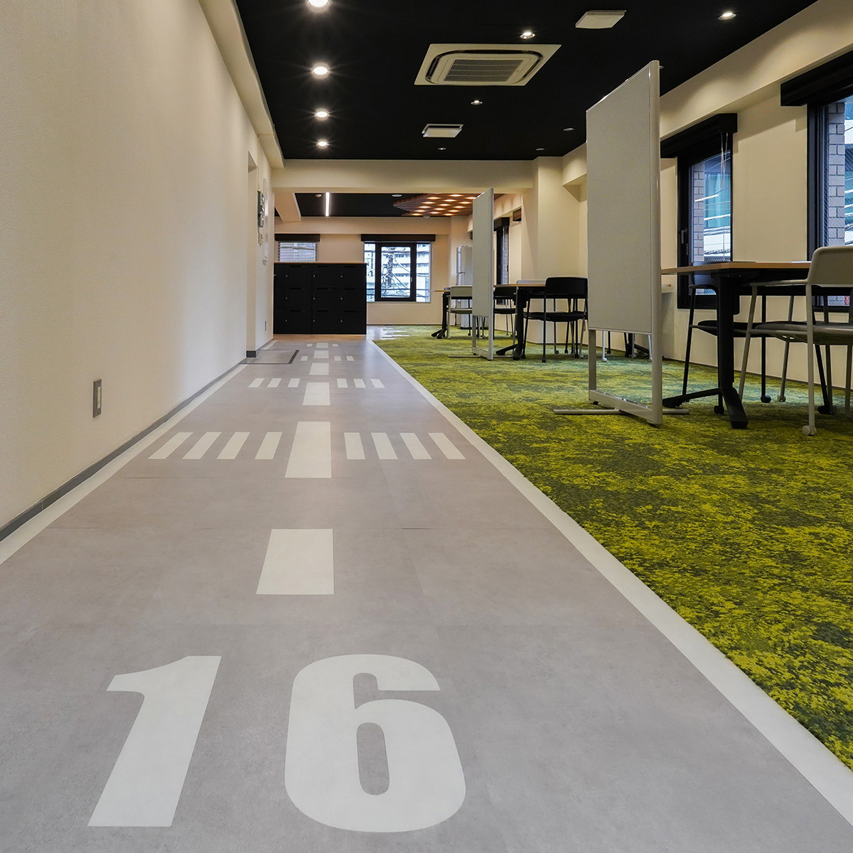 クライアントからの要望である、『滑走路』『自衛隊』『橋』などの要素に、ミッションとして掲げている“再生医療のラストワンマイルをつなげる”をインダストリアルを基調とし具現化。かまくらの様に篭って作業や打合せが可能な軍倉庫を彷彿とさせるセミクローズドブースや、 高さを変え様々な人が快適に利用できる什器の導入など、ワーカーへの負担を最小限にできるよう考慮しました。