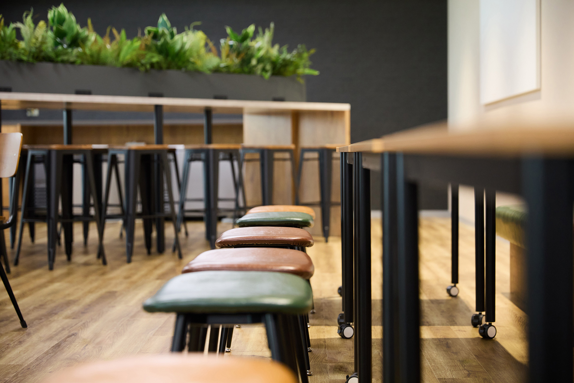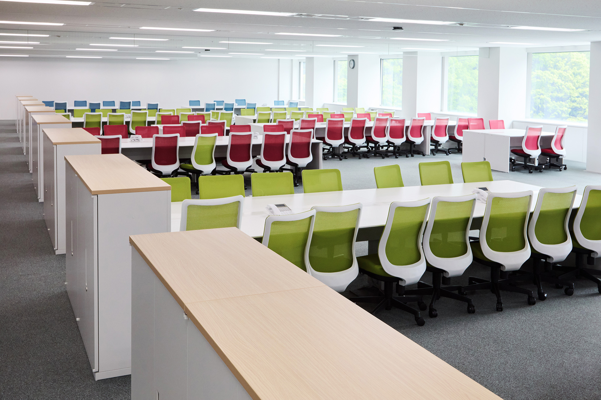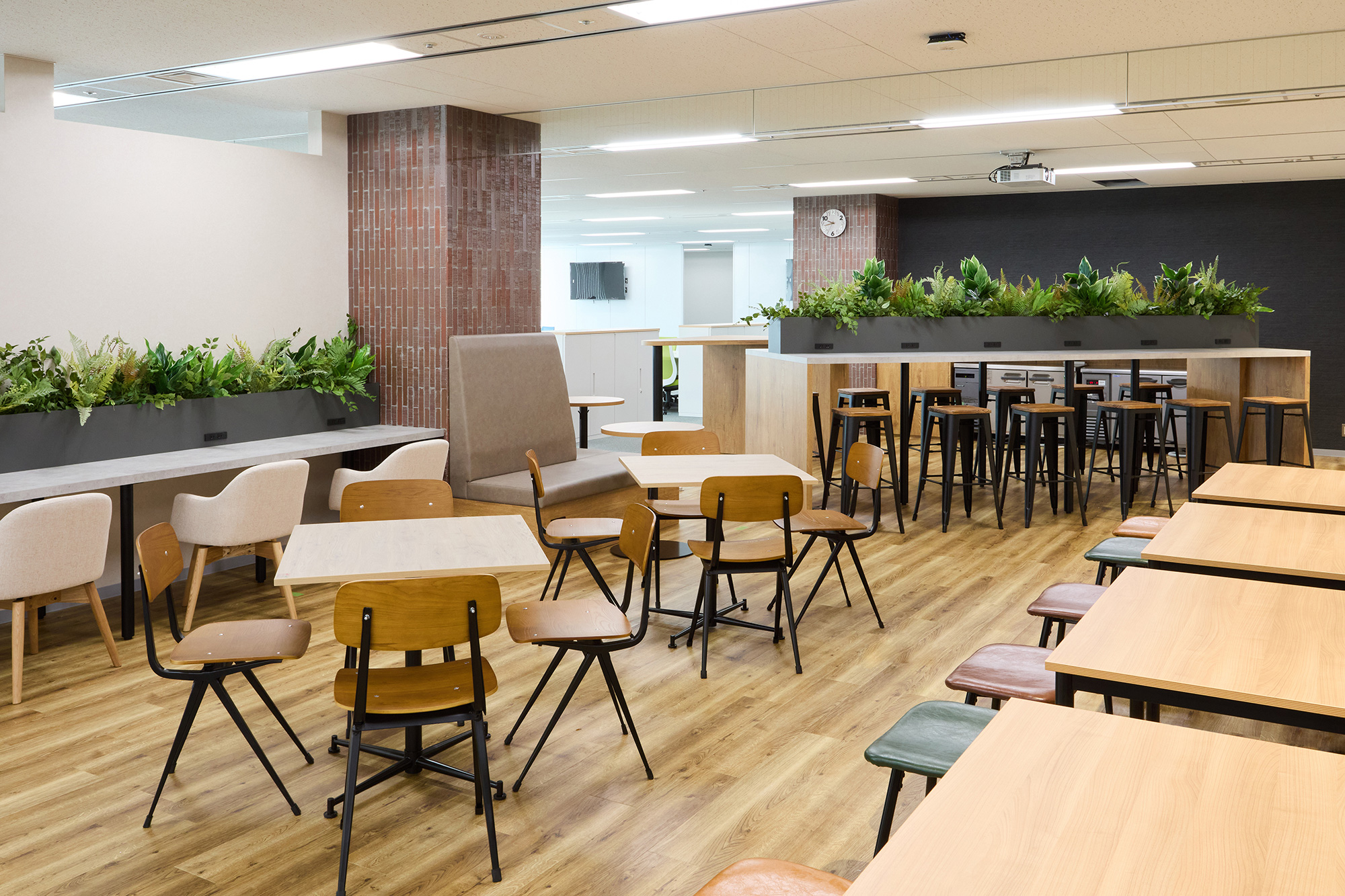 作業スペースはナチュラルをベースに植栽やウッド調を取り入れることで落ち着ける空間に仕上げ、作業の生産性を上げる効果が期待できます。