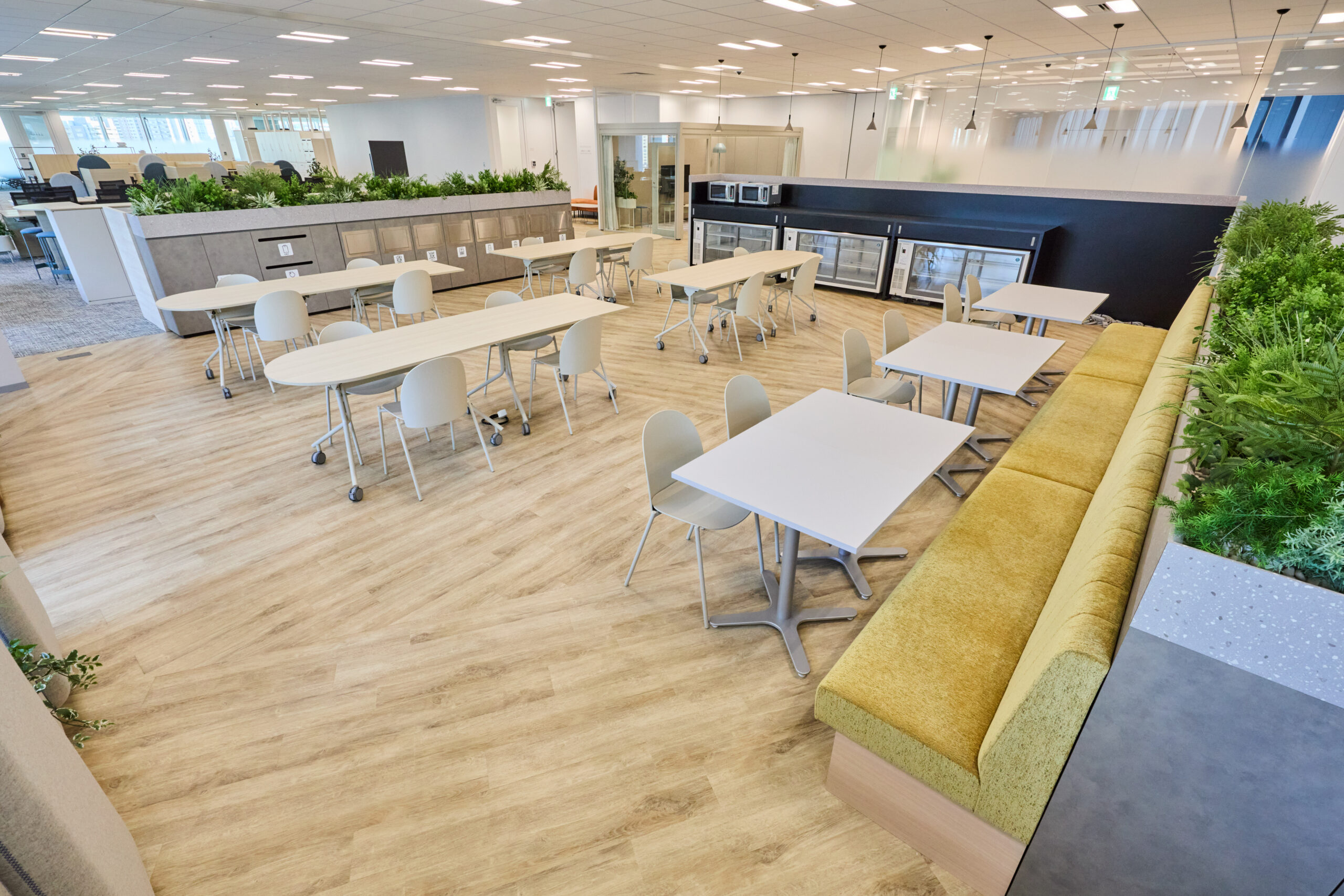 本プロジェクトでは、アイリスチトセ様がオフィス全体の基本設計を担当し、サンニンはその設計意図を踏まえた実施設計および施工を担当しています。