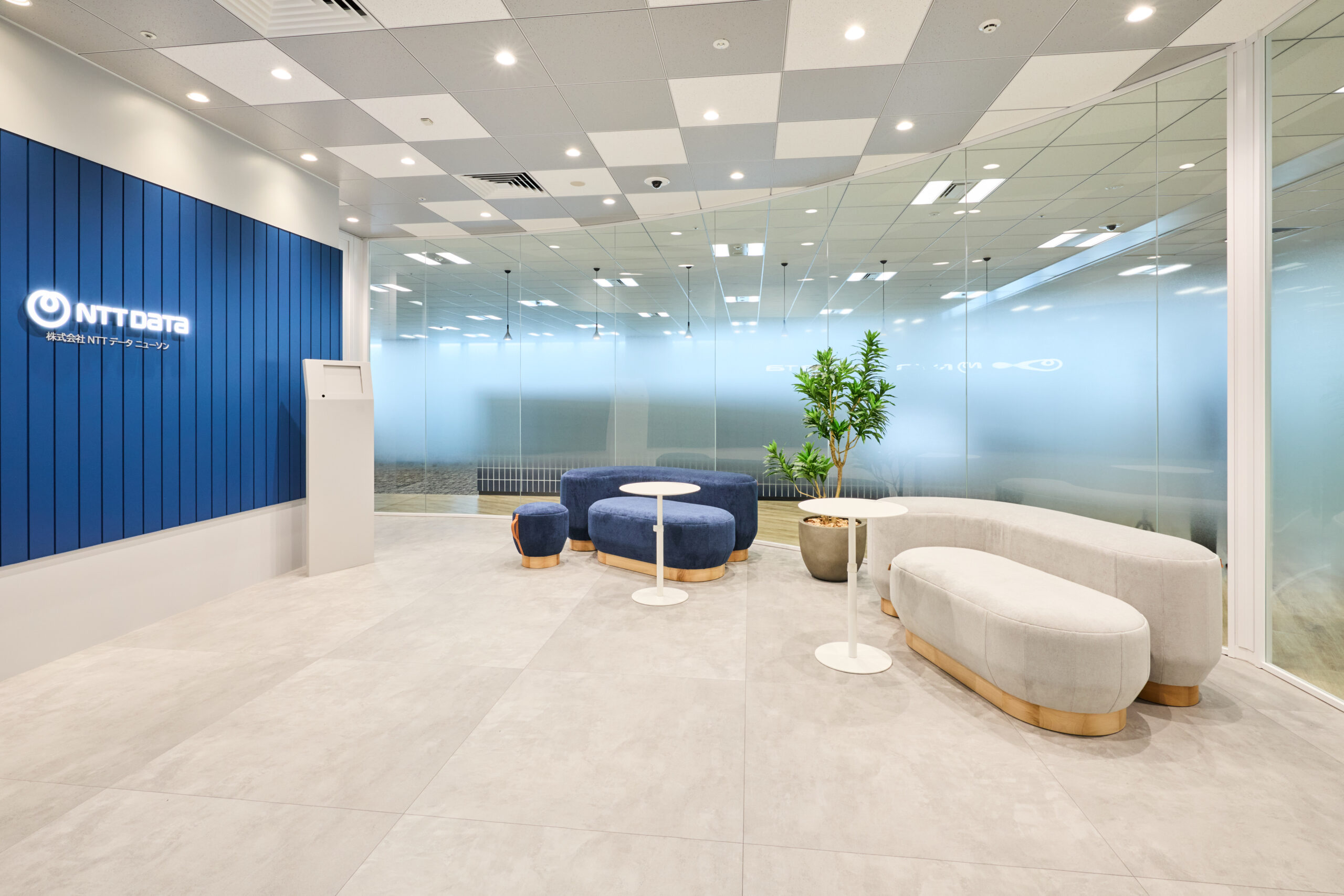 来訪者を迎え入れる場としての視認性や象徴性を高めるとともに、企業イメージを自然に印象づける、オフィス全体と統一感のある空間を実現しました。